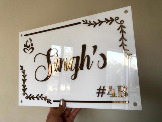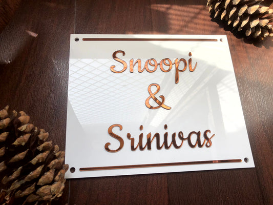White And Copper Acrylic Nameplate