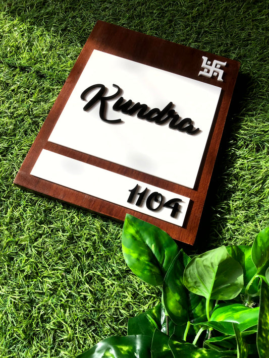 White And Black Wooden Nameplate