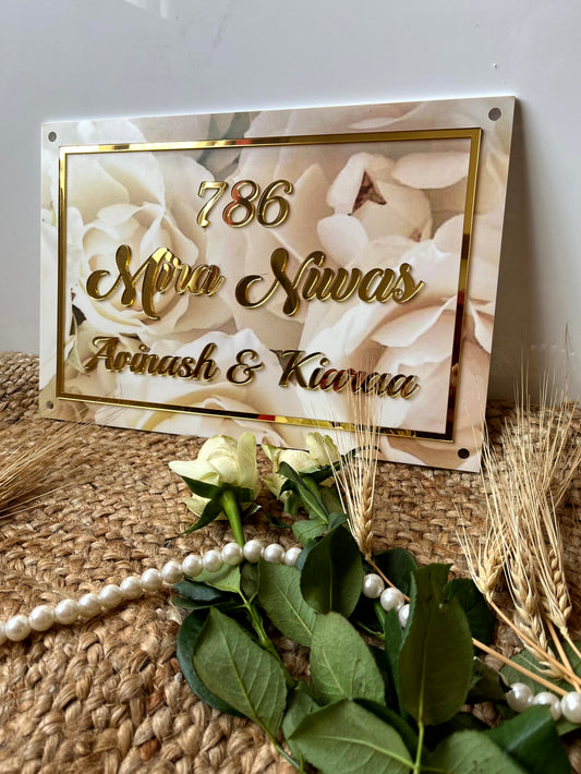 White Floral Print Nameplate
