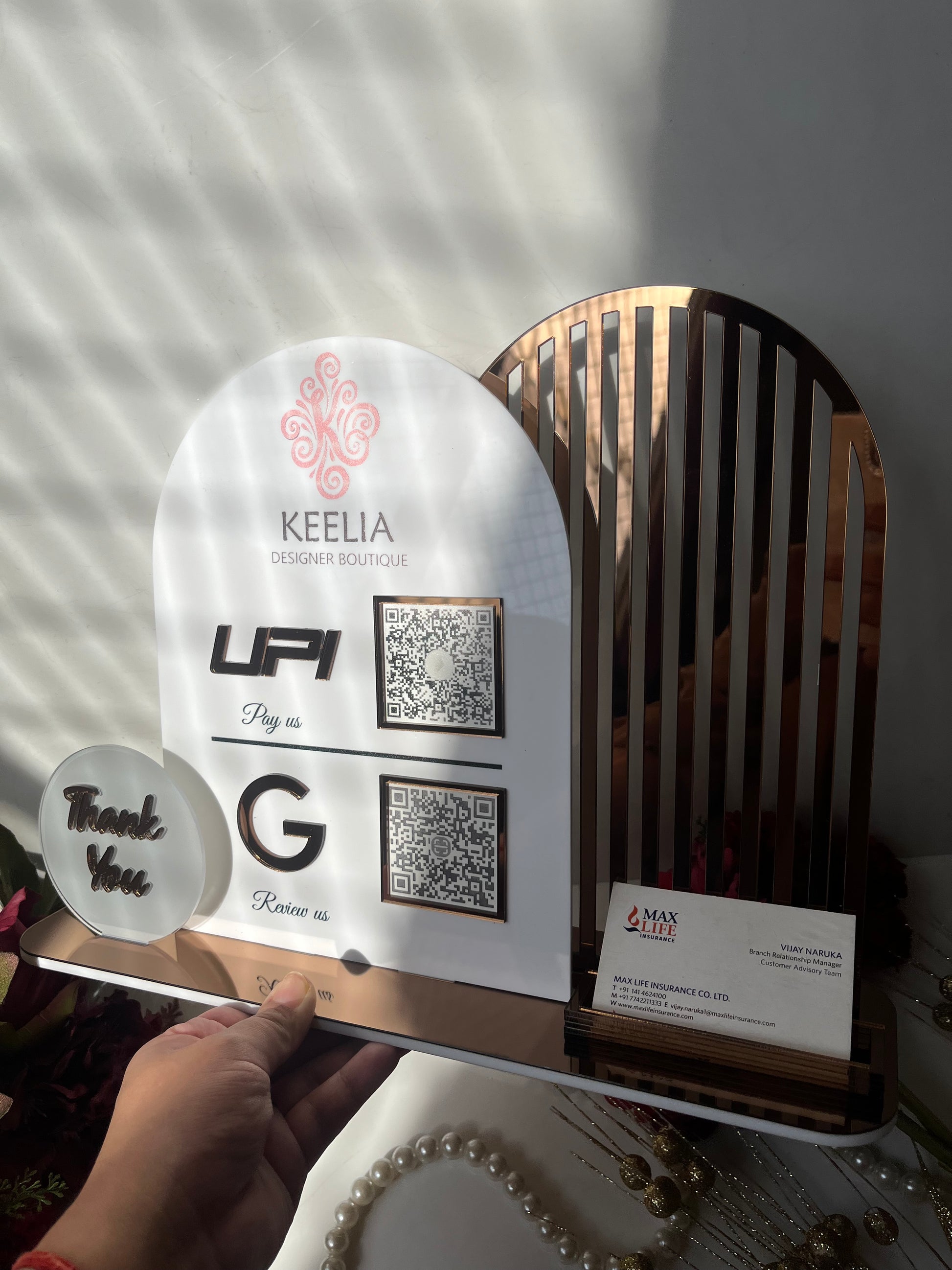 Standee that speaks your brand loud, helps you in taking payments and keeping your clients connected through social media