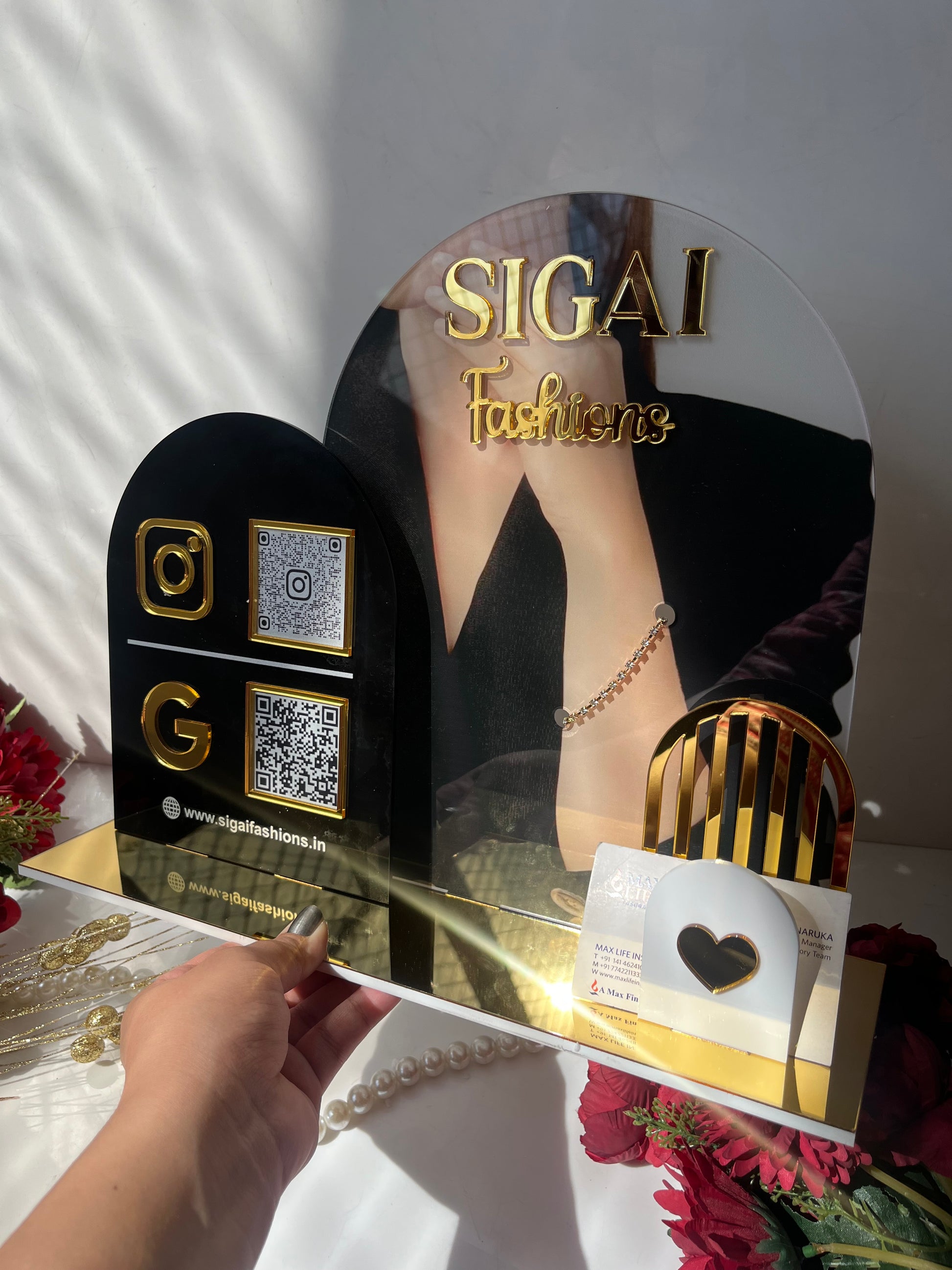 Standee that speaks your brand loud, helps you in taking payments and keeping your clients connected through social media